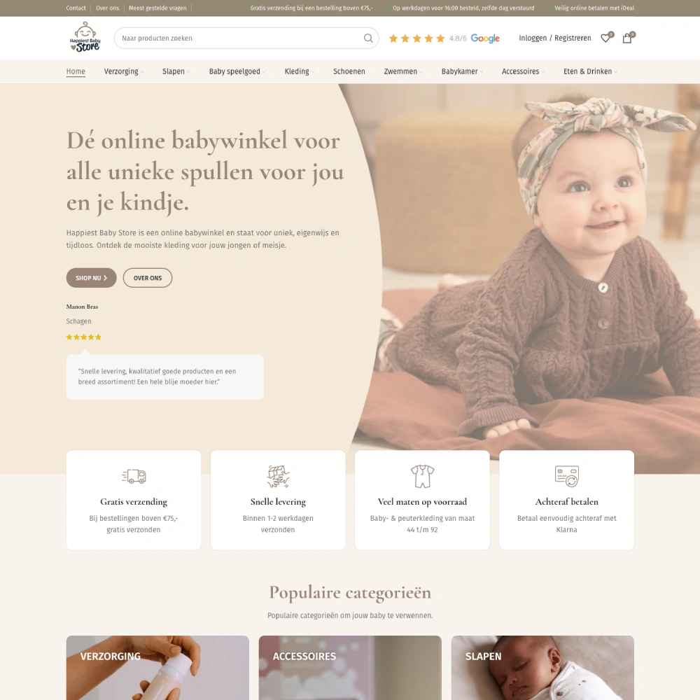 Happiest Baby Store is onderdeel van Happiest Baby Spa en met deze tak van het bedrijf verkoopt Danielle babykleding van diverse merken online. De opdracht voor Improve Design was om de verouderde Lightspeed webshop te vernieuwen in Woocommerce.